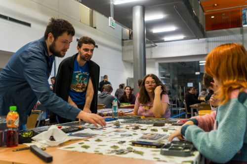 Nie zabrakło też emocji w strefie gier. Uczestnicy mogli spróbować swoich sił w Mafii, planszówkach i grach RPG. Za bogaty repertuar gier odpowiadało Koło Naukowe Ugranie oraz Centrum Aktywności Studenckiej i Doktoranckiej.