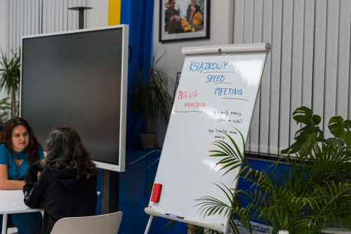 Ponieważ biblioteka to przede wszystkim książki, zadbaliśmy również o literacką część programu. W strefie książki odbył się speed meeting koordynowany przez Sebastiana Barczaka – goście mogli podzielić się swoimi czytelniczymi pasjami i porozmawiać o ulubionych tytułach w atmosferze swobodnej pogawędki.