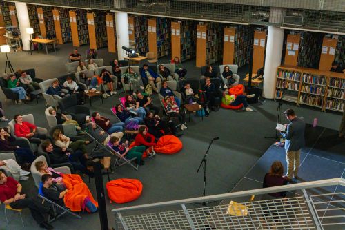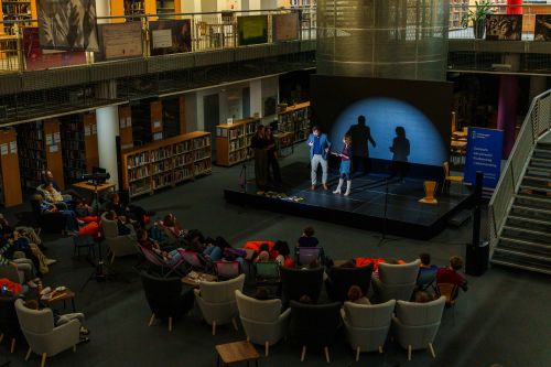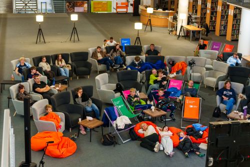 Emocje powoli opadają, przestrzeń Biblioteki Głównej wraca do swojej codziennej aranżacji, a w powietrzu nie unosi się już zapach popcornu ani słodycz cukrowej waty. Za nami wyjątkowy wieczór, który odwiedziło prawie 350 osób – wszystkim razem i każdemu z osobna serdecznie dziękujemy!