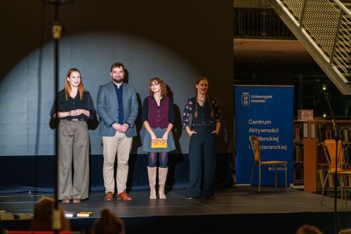 strefie spotkań autorskich gościliśmy dr. Dominika Bienia, który opowiadał o swojej książce „Równość, wolność, solidarność. Myśl polityczna Komitetu Obrony Robotników”. Spotkanie poprowadził Maciej Ciemny. Następnie prof. Beata Możejko zabrała nas w fascynującą podróż w czasie, opowiadając z pasją o życiu średniowiecznych księżniczek. Czy warto było być jedną z nich? Odpowiedź można znaleźć w książce Pani Profesor „Księżniczki i inne. O sześciu średniowiecznych władczyniach, szlachciance i pisarce”. Rozmowę poprowadziła dr Joanna Kamień, Dyrektorka Wydawnictwa UG.