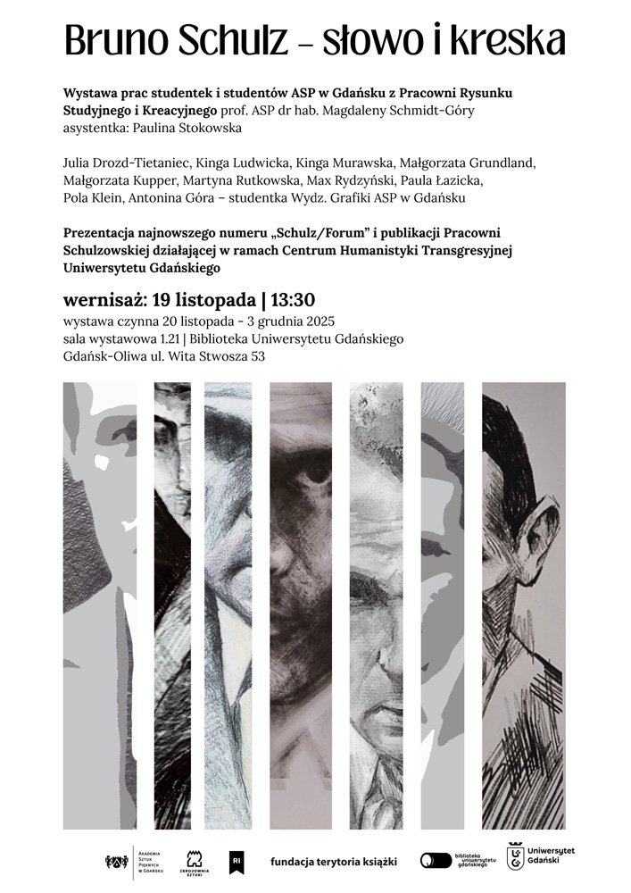 19 listopada 2025 r. odbył się wernisaż otwierający wystawę prezentującą prace studentów Akademii Sztuk Pięknych w Gdańsku, powstałe w oparciu o motywy zaczerpnięte z twórczości Brunona Schulza. Zaprezentowane realizacje, zróżnicowane pod względem formy oraz przyjętej perspektywy interpretacyjnej, stanowią artystyczne odwołanie do charakterystycznej symboliki i imaginarium autora Sklepów cynamonowych.