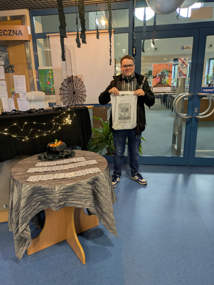 W piątkowe przedpołudnie, 28 listopada 2025, zaprosiliśmy naszych użytkowników do wspólnej zabawy - połączyliśmy przyjemne z pożytecznym: były wróżby i praca z katalogiem. Każdy los wygrywał! W naszej andrzejkowej imprezie wzięło udział około 50 osób, zarówno studenci UG, jak i pracownicy Wydziału Prawa i Administracji.