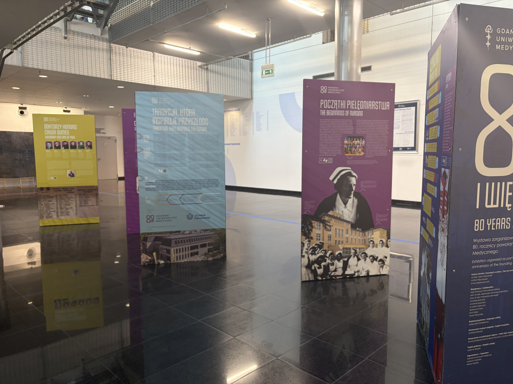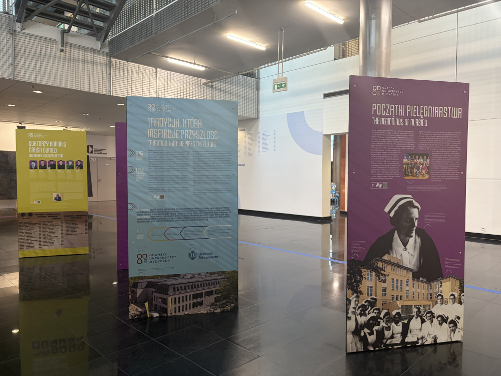 Zapraszamy do obejrzenia wystawy 80 lat i więcej, która zagościła w Bibliotece Uniwersytetu Gdańskiego. Ekspozycja została przygotowana z okazji 80-lecia Gdańskiego Uniwersytetu Medycznego. Składa się ona z piętnastu plansz, które ukazują rozwój Uczelni – powołanej 8 października 1945 roku – w kluczowych obszarach: dydaktyki, nauki, opieki zdrowotnej i infrastruktury. Wystawa przypomina o pionierach gdańskiej medycyny – pierwszych wykładowcach i studentach – a także prezentuje dorobek naukowy i kliniczny Uczelni, dzisiejsze osiągnięcia i plany na przyszłość.